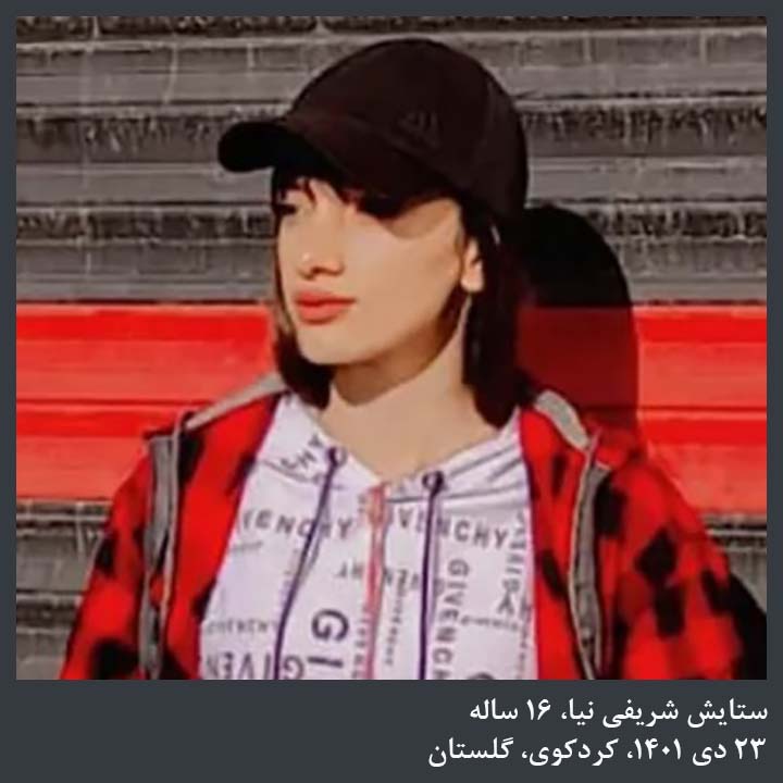 به‌پێی ڕاپۆرته‌كان، مێرمنداڵێكی ته‌مه‌ن ١٦ ساڵی خه‌ڵكی كوردكوی به‌ناوی “ستایش شه‌ریفی نیا” كه‌ له‌ ڕه‌وتی ناڕه‌زایه‌تیه‌كانی ئه‌و شاره‌دا به‌شداری كردبوو له‌لایه‌ن هێزه‌ ئه‌منیه‌كانه‌وه‌ كوژراوه‌. به‌پێی زانیارییه‌كان، “ستایش شه‌ریفی نیا” له‌ كاتی خۆپێشاندانه‌كانی كوردكوی له‌لایه‌ن هێزه‌ ئه‌منیه‌كانه‌وه‌ ده‌ستبه‌سه‌ر و به‌سه‌ختی ئه‌شكه‌نجه دراوه‌ و پاش ئازادبوونی له‌ ڕێكه‌وتی ٢٣ی مانگی به‌فرانبار دا به‌هۆی سه‌ختی برینه‌كانیه‌وه‌ له‌ نه‌خۆشخانه گیانی به‌ختكردووه‌ و ناوه‌نده‌ ئه‌منیه‌تیه‌كان بنه‌ماڵه‌كه‌یان خستۆته‌ ژێر گوشار بۆ ئه‌وه‌ی هۆكاری گیان له‌دستدانی ڕۆڵه‌كه‌یان نه‌خۆشی ڕابگه‌ینن.