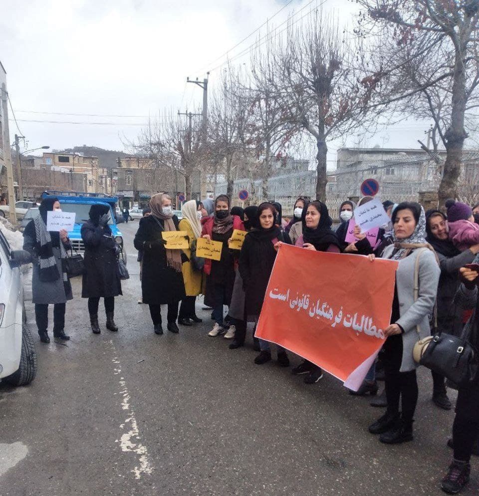 ڕۆژی یهكشهممه ١٧ی مانگی ڕێبهندان، خۆپیشاندانی مۆعهلیمان و فهرههنگیانی مهریوان له ناڕهزایهتی به دهستبهسهر كردنی “شهعبان محهممهدی” ئهندامی كانوونی سینفی مۆعهلیمانی مهریوان، له بەرانبەر فەرمانداری ئهو شاره بهڕێوهچوو.