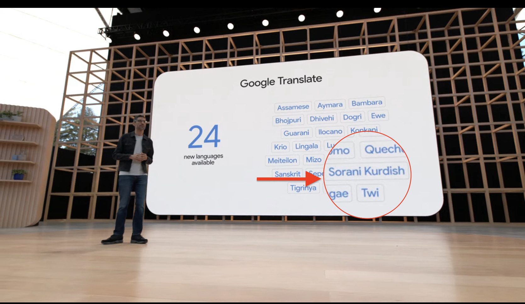لەو پێوەندییە دا “ئیزاک کاسۆل” یەکێک لە بەرپرسانی کۆمپانیای گووگڵ رایگەیاند کە زاراوەی کوردی سۆرانی لە گەڵ ١٣٣ زمانی تری زیندووی دونیا لە گووگڵ ترانزلێیت لە بەر دەستی بەکارهێنەران دایە. پێشتر کۆمپانیای گووگڵ، زمانی کوردی بە زاراوەی “کرمانجی سەروو”ی بۆ خزمەتگوزاریی وەرگێران زیاد کردبوو ، بەڵام لە ئێستادا دوو زاراوەی سۆرانی و کرمانجیی سەروو لە ناو گووگڵ ترانزلێیت دا جێگیر کراون. جێگای ئاماژەیە هەوڵدان بۆ جێگیرکردنی زاراوەکانی دیکەی زمانی کوردی لە گووگڵ ترانزلێیت وەک زازاکی، هەورامی و کەلهوڕی لە لایەن دڵسۆزانی زمانی کوردیەوە بەردەوامە.