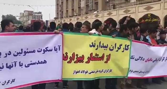 سهر له بهیانی رۆژی شهممه ٢٧ی مانگی خاكهلێوه، كرێكارانی شیركهتی فوولادی ئههواز بۆ گهیشتن به داخوازییهكانیان لهبهردهم ئۆستانداری خووزستان له شاری ئههواز كۆبوونهوهیهكی ناڕهزایهتییان بهڕێوه برد.