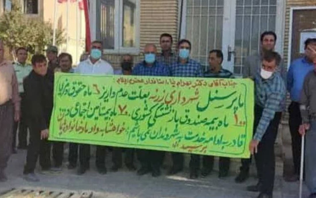 ڕۆژی یەکشەممە ١٣ی مانگی خەرمانان، كۆمهڵێك لە كرێكارانی شارەداری “زەڕنە”ی سهر به شاری ئەیوان له ئوستانی ئیلام، بەهۆی دواکەوتنی ٧ مانگ حهقدست، دهستیان لهكار كێشایهوه و مانیانگرت.