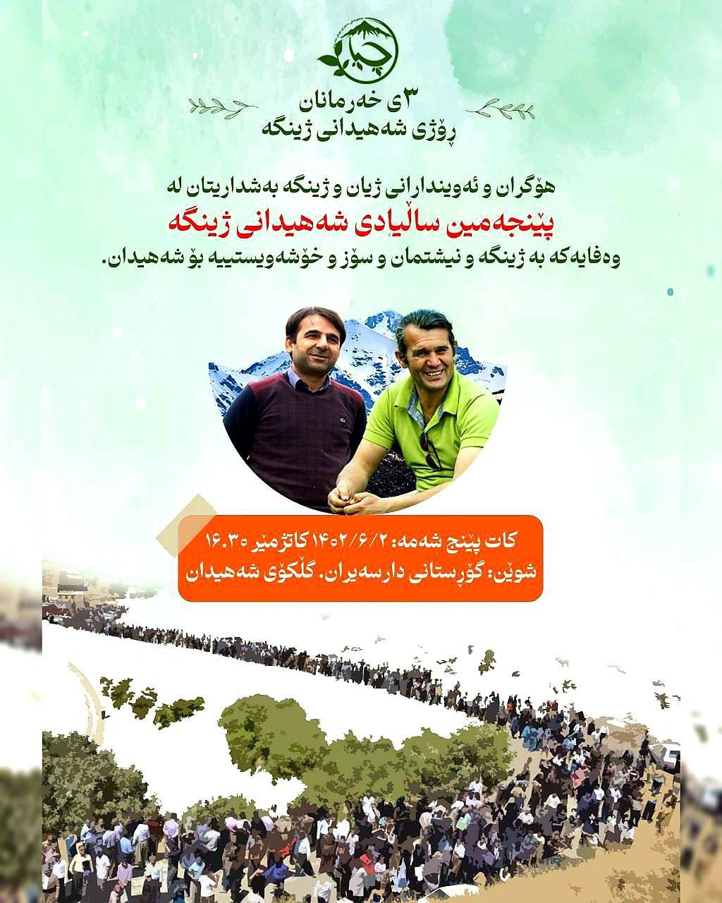 ڕۆژی چوارشهممه ١ی خهرمانان، ئازادیخوازانی كوردستان له بانگهێشتنامهیهك دا به بۆنهی ساڵڕۆژی گیانبهختكردنی چالاكانی ژینگه، داوایان له خهڵك كرد به مهبهستی ڕێزگرتن له فیداكارییهكانیان ڕۆژی پێنجشهممه ٢ی خهرمانان لهسهر مهزاری “شههیدانی ژینگه” له دارسهیران كۆببنهوه.