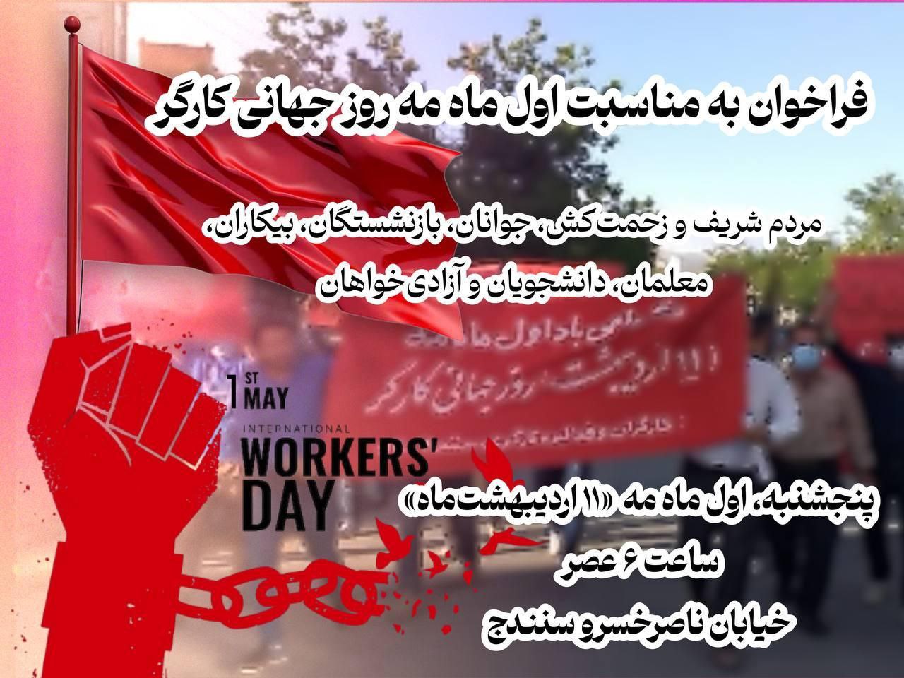 كۆمهڵێك له كرێكاران، ژنان و كاسبکارانی شاری سنه به بڵاو كردنهوهی بهیاننامهیهك، ڕۆژی جیهانی كرێكاریان پیرۆز كرد و خوازیاری كۆبوونهوهی ئازادیخوازان له شهقامی “ناسر خهسرهو”ی ئهو شاره بوون.