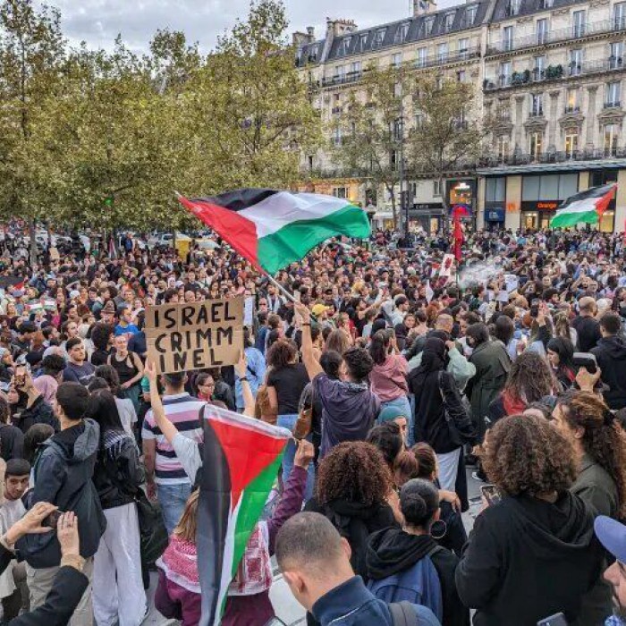 شهوی پێنجشهممه ١١ی مانگی خهزهڵوهر، لایهنگرانی فهلهستین له شاری پاریس به مهبهستی پشتیوانیكردن له خهڵكی بێتاوانی غهزه ڕژانه سهر شهقام و خۆپێشاندانیان كرد.