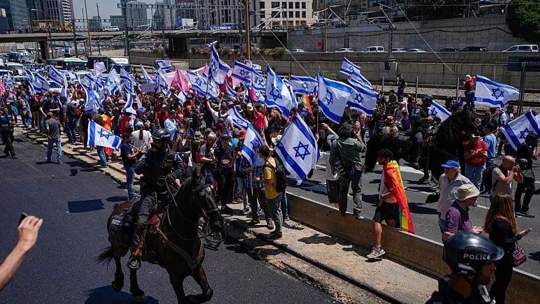شارۆمه‌ندانی ئیسڕائیلی ڕۆژی پێنجشه‌ممه‌ ١٤ی مانگی گوڵان، بۆ جارێكی دیكه‌ دژبه‌ ده‌وڵه‌تی ڕاستگه‌رای نتانیاهوو و گۆڕانی یاسای قه‌زایی ڕژانه سه‌ر شه‌قام و خۆپێشاندانیان كرد.