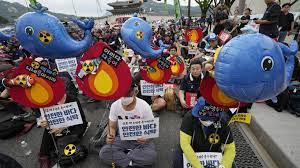 كۆمهڵێك له ژینگهدۆستان و شارۆمهندانی خهڵكی كوریای باشوور ڕۆژی سێشهممه ٣١ی گهلاوێژ، به كۆبوونهوه لهبهردهم شارهوانی سێئوول، ناڕهزایهتی خۆیان له ئاست بڵاوكردنهوهی ئاوی تێكهڵ به مادهی ڕادیۆئهكتیوی وزهخانهی فۆكۆشیمای ژاپۆن بۆ نێو زریاكان نیشان دا.