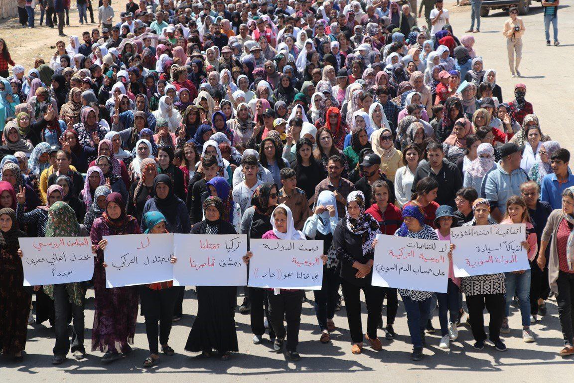 ڕۆژی یهكشهممه ٢١ی مانگی جۆزهردان، پهنابهرانی شاری عهفرین و دانیشتووانی ناوچهی شههبا له ناڕهزایهتی به دهستێوهردانهكانی ڕووسیه له كاروباری سووریه و بایهخ نهدانیان به هێرشهكانی توركیا خۆپێشاندانیان كرد.