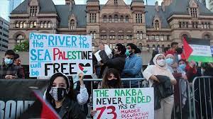 ڕۆژی شهممه ٦ی مانگی خهزهڵوهر، لایهنگرانی فهلهستین له شاری تۆرنتۆی كانادا دژبه هێرشهكانی ئیسڕائیل بۆ سهر غهزه خۆپێشاندانیان كرد و خوازیاری ڕاگرتنی شهڕ بوون.