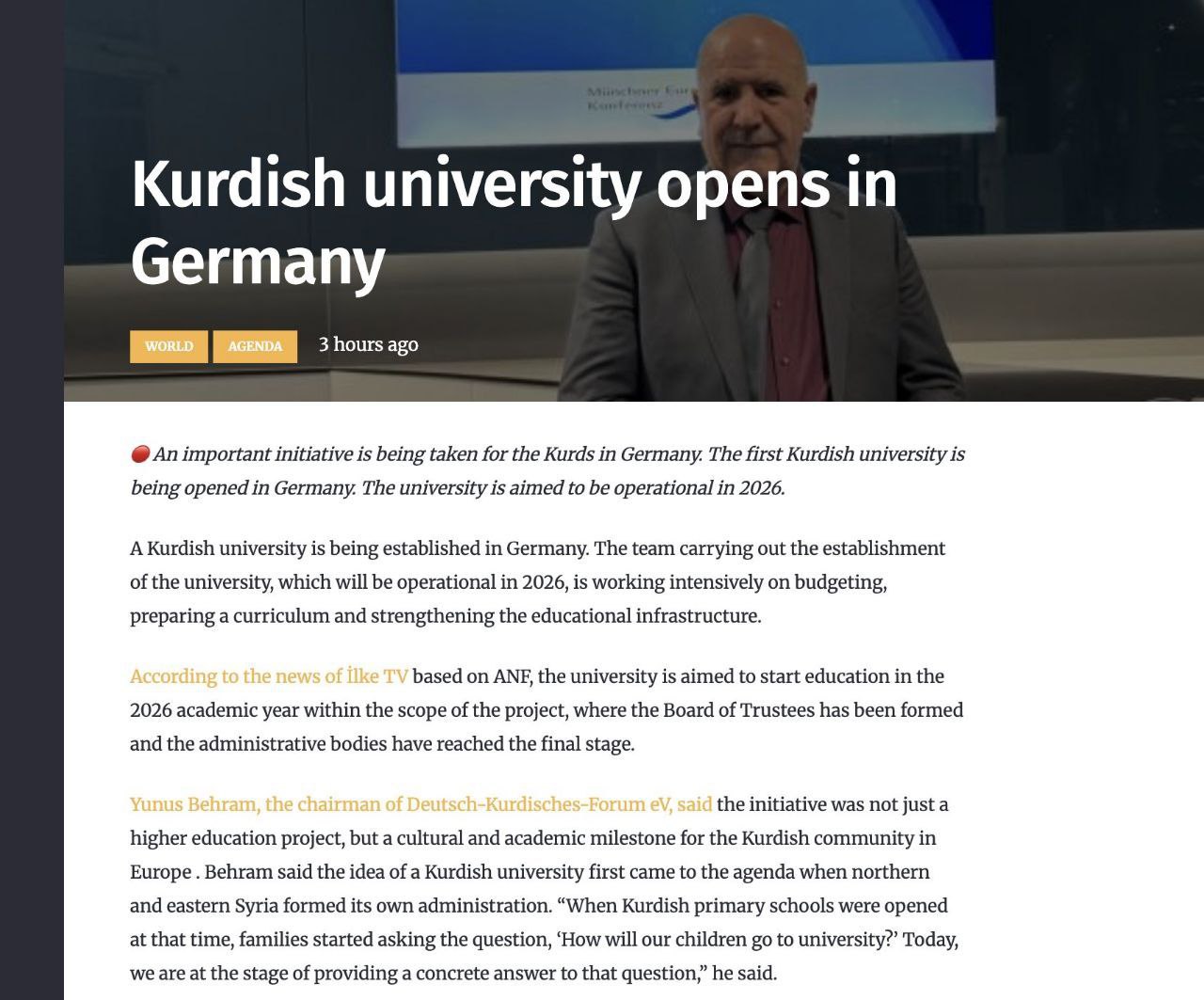 به‌پێی ڕاپۆرتی میدیاكانی ئاڵمان، ده‌وڵه‌تی ئه‌و وڵاته بڕیاری داوه‌ له‌ ساڵی ٢٠٢٦ی زاینی دا زانكۆی كوردی دابمه‌زرێنێت.