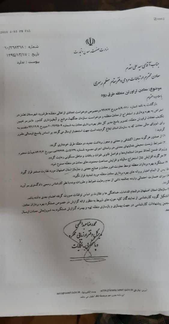 دانیشتووانی گوندی “تۆرۆق ڕوود”ی سهر به شاری نهتهنز دوای ئاگاداربوونەوەیان لە دەركردنی بڕیارێكی نوێ سەبارەت بە دەرهێنانی كانزای بەرد لە ناوچەیەك بە دووری ١٠٠ میتر لە ماڵ و زەوییە كشتوكاڵییەكانیان كۆبوونهوه و خوازیاری ڕاگرتنی چالاكییهكانی مهعدهن بوون. ساڵانێكە مافیاكانی حكوومەت بەشێوەیەكی نایاسایی سەرچاوە سروشتی و كانزاكانی ئەو ناوچەیە بەتاڵان دەبەن و ژینگەیان تێكداوە، ئەمە بووەتە هۆی وشكبوونی دارەكان و خۆڵبارین، جیا لەوە تەقینەوەی كانەكان و هەڵكەندنی چاڵەكان بووەتە هۆی كەم ئاوی و خەڵكەكە ڕووبەڕووی بێئاوی سهخت بوونەتەوە.