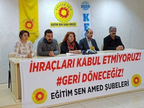 دهزگای قهزایی ڕژیمی توركیا ئهو ٢١ مهعهلیمهی خهڵكی “دیاربهكری” پێشتر به تۆمهتی بهشداری كردن له كۆنگرهی “ك.ج.د” بانگهێشت و لێپرسینهوهی لهگهڵ كردبوون. به پێی زانیارییهكان ئهو بڕیاره له لایهن دادگای دیاربهكرهوه به وهزارهتی پهروهردهی توركیا دراوه بۆ دهركردنی ئهو ٢١ مۆعهلیمه كورده كه ناڕهزایهتی ڕێكخراوهكانی مافی مرۆڤ و هاوكارهكانیانی له كهوتووهتهوه و لهو بارهوه ڕایانگهیاند: ئهو بڕیاره نایاساییه و تهنیا بڕیارێكی فاشیستی و سیاسیه.