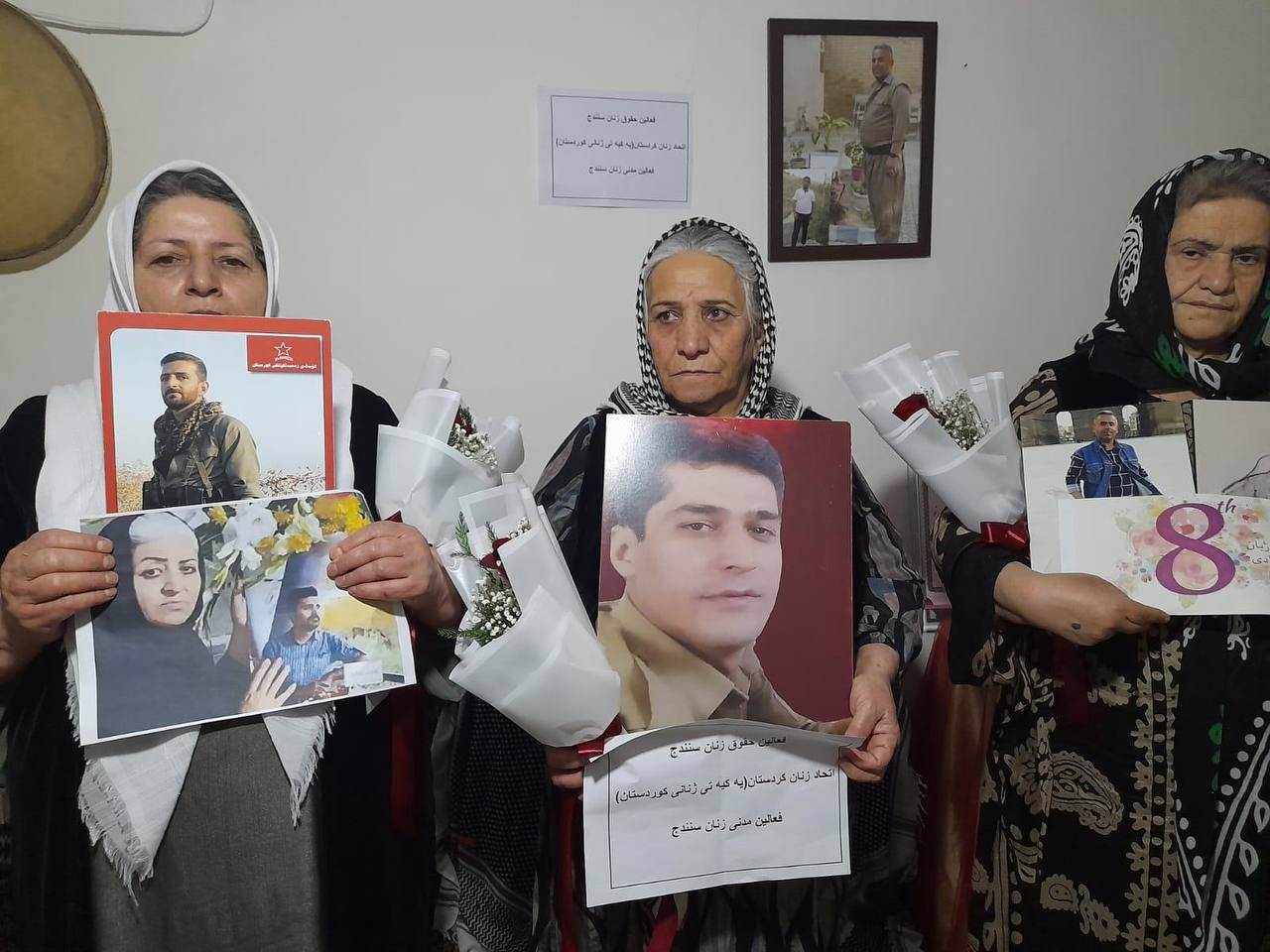 ڕۆژی هه‌ینی ١٧ی ڕه‌شه‌ممه‌، كۆمه‌ڵێك له‌ چاالاكانی مافی ژن سه‌ردانی دایكانی دادخوازی شاری سنه‌یان كرد و به‌ بۆنه‌ی ٨ی مارس، ڕۆژی جیهانی ژن، گولی سووریان پێشكه‌شیان كرد.