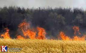 سووتانی ٢٠ هێكتار گه‌نم له‌ كامیاران به‌هۆی ئاگركه‌وتنه‌وه‌