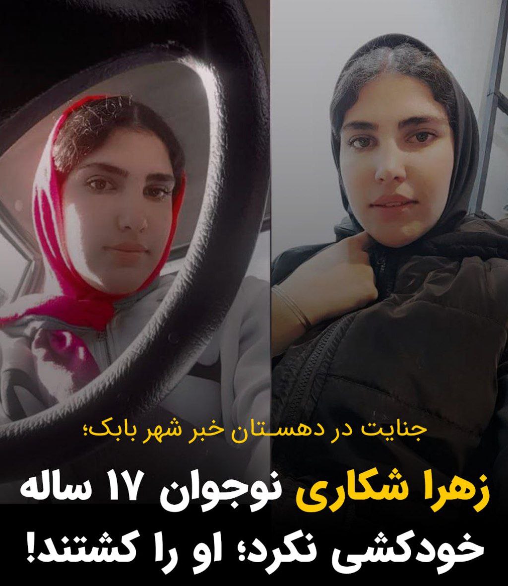 له‌ ڕۆژانی ڕابردوودا، كچێكی ته‌مه‌ن ١٧ ساڵی خه‌ڵكی شهربابه‌كی كرمان به‌ ناوی زه‌هرا شكاری له‌لایه‌ن بنه‌ماڵه‌كه‌یه‌وه‌ به‌ شێوه‌یه‌كی وه‌حشیانه كوژراوه‌.