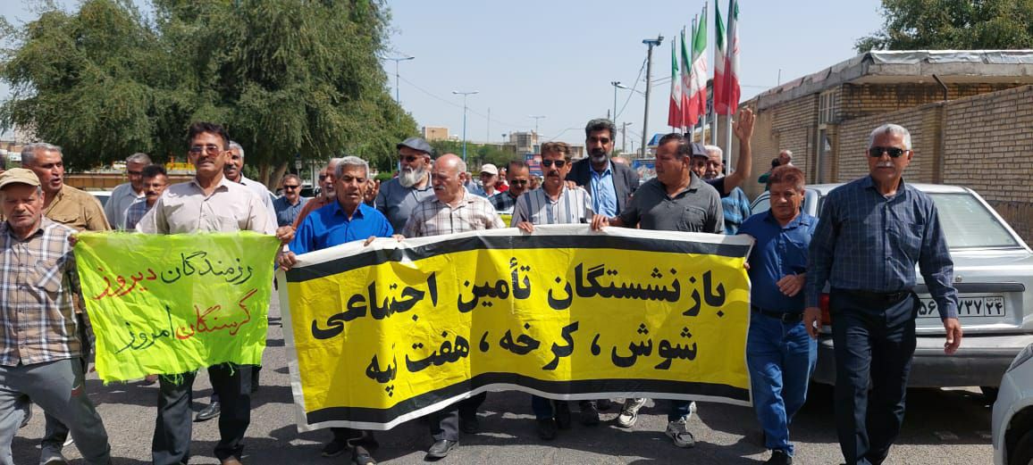 ڕۆژی یهكشهممه ٢٤ی خاكهلێوه، خانهنشینكراوانی تهئمیین ئیجتیماعی له شارهكانی كرماشان، تاران، ڕهشت، شووش و ئههواز دژ به دۆخی خراپی مهعیشهتی كۆبوونهوه.
