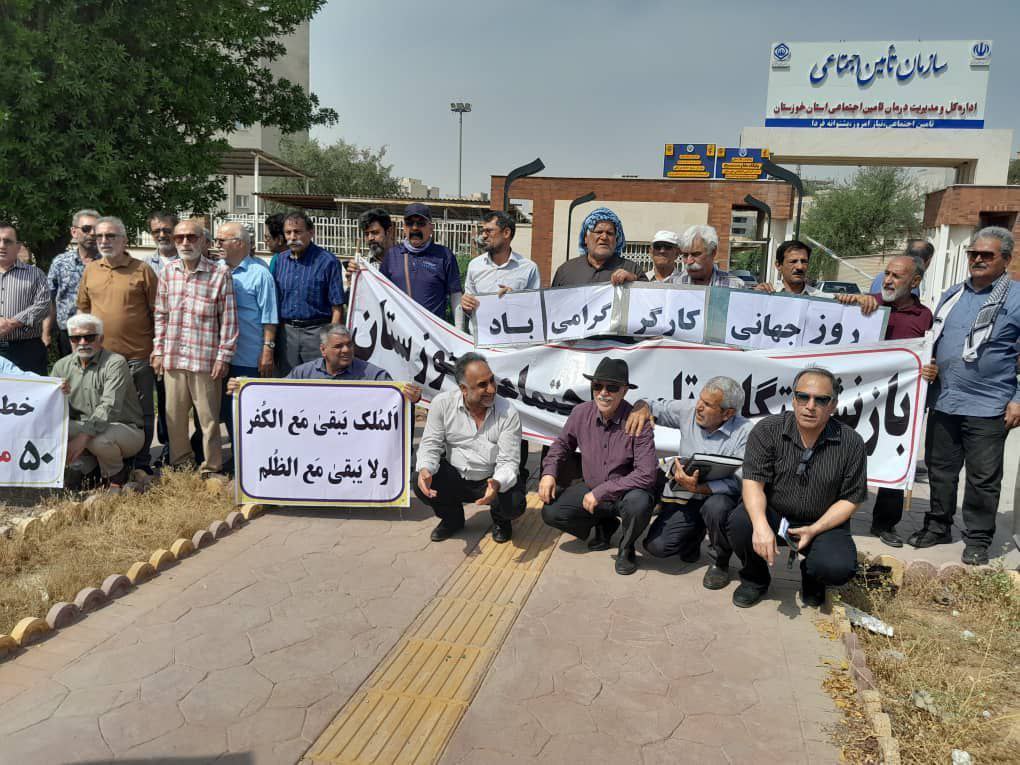 ڕۆژی یهكشهممه ٧ی گوڵان، خانهنشینكراوانی تهئمیین ئیجتیماعی له شارهكانی كرماشان، تاران، ئههواز و شووش دژ به دۆخی خراپی مهعیشهتی كۆبوونهوه.