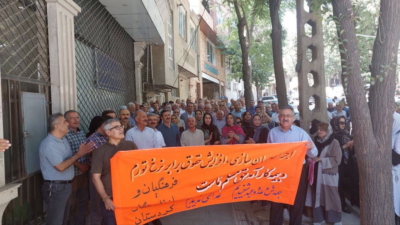 ڕۆژی سێشه‌ممه‌ ٣ی مانگی گه‌لاوێژ، خانه‌نشینكراوانی كیشوه‌ری له‌ ڕۆژهه‌ڵاتی كوردستان هاوكات له‌گه‌ڵ خانه‌نشینكراوانی چه‌ند شاری دیكه‌ی ئێران دژبه‌ خراپی دۆخی مه‌عیشه‌ت كۆبوونه‌وه‌.