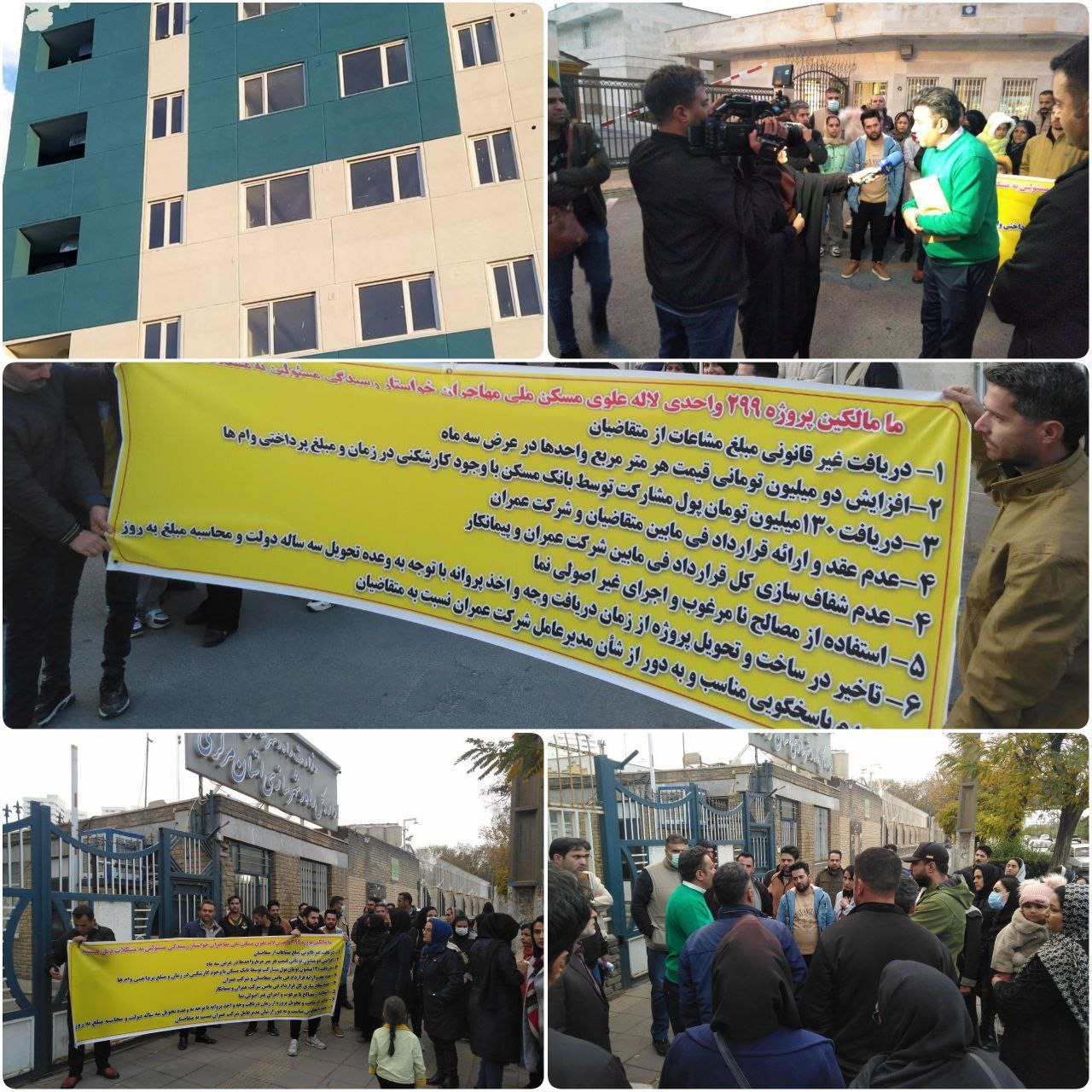ڕۆژی ههینی ٢٦ی گوڵان، خوازیارانی مهسكهنی میللی له شارهكانی شاباد و زهنجان دژ به ناڕوونی چارهنووسی خانووهكانیان خۆپێشاندانیان كرد.