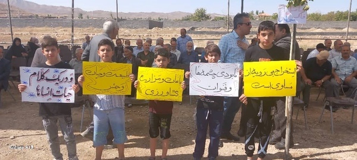 خه‌ڵكی ناڕازی ئاماژه‌ به‌وه‌ ده‌كه‌ن كه‌ به‌ هۆی چالاكییه‌كانی كانگاكان له‌ ئه‌و ناوچه‌یه‌ سه‌رچاوه‌ ئاوییه‌كانی ئه‌و ناوچه‌یه‌ كه‌م كه‌م له‌ ناو ده‌چێت و هه‌روه‌ها زیانێكی زۆر به‌ر جووتیاران و خه‌ڵكی ئه‌و شاره‌ كه‌وتووه‌. له‌ به‌رده‌وامی كۆبوونه‌وه‌کەدا‌ ناڕازیان خوازیاری كۆتایی هاتنی چالاكییه‌كانی كانگه‌كانی ئه‌و ناوچه‌یه‌، سزادانی تاوانباران و هه‌روه‌ها بایه‌خ دانی ڕژیمی كۆماری ئیسلامی به‌ داخوازییه‌كانی خه‌ڵكی ئه‌و شاره‌ و ناوچه‌کانی ده‌وروبه‌ری بوون.