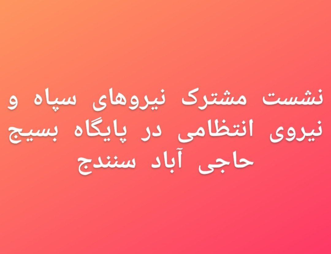 بهپێی ههواڵی گهیشتوو، ڕۆژی دووشهممه ٦ی خهرمانان، ژمارهیهكی زۆر له فهرماندهی هێزه ئینتزامییهكانی سنه لهگهڵ هێزهكانی بنكهی بهسیجی گهڕهكی حاجی ئاوای سنه كۆبوونهوهی تایبهتیان بهڕێوه بردووه.