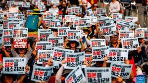 له‌ ڕێكه‌وتی ١١ی مارسی ساڵی ٢٠١١ دا سۆنامی زیانێكی گه‌وره‌ی له‌ وزه‌خانه‌ی ئه‌تۆمی فۆكۆشیما دا و ده‌ ساڵ پاش ئه‌و ڕووداوه‌ ده‌وڵه‌تی ژاپۆن بڕیاری داوه‌ ئاوی تێكه‌ڵ به‌ ماده‌ی ڕادیۆئه‌كتیو كه‌ بۆ فێنك كردنه‌وه‌ی ڕێئاكتۆره‌كان به‌كار هێندرابوو، تێكه‌ڵ به‌ ئاوی ده‌ریا بكات. ئه‌و بڕیاره‌ی ده‌وڵه‌تی ژاپۆن كاردانه‌وه‌ی توندی له‌ وڵاتانی چین، كوریای باشوور و باكوور هه‌بوو و خه‌ڵكی ژاپۆنیش له‌ ناڕه‌زایه‌تی به‌ پیس كردنی ئاوی ده‌ریاكان چه‌ند كۆبوونه‌وه‌ی ناڕه‌زایه‌تیان به‌ڕێوه‌ برد.