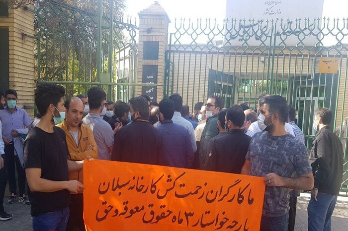 ڕۆژی پێنج شهممه ٢٩ی مانگی ڕهزبهر، كۆمهڵێك له كرێكارانی كارخانهی سهبهلان پارچهی ئهردهبیل، له ناڕهزایهتی به پهرداخت نهكردنی سێ مانگ حهقدهست و بیمهكانیان له بهرانبهر ئۆستانداری ئهردهبیل كۆبوونهوه.