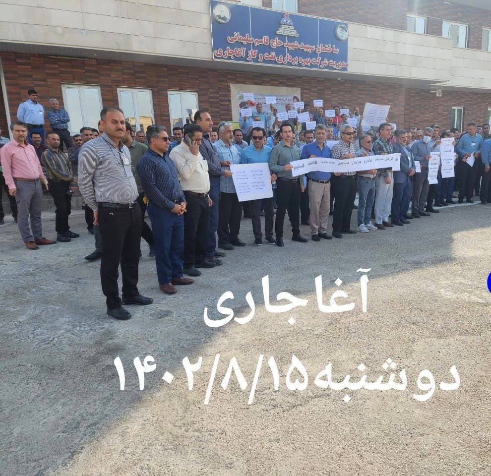 ڕۆژی دووشهممه ١٥ی مانگی خهزهڵوهر، كرێكارانی ڕهسمی شاغڵ له پڕۆژهكانی نهوت و گازی ناوچهی ئاغاجهری له پارێزگای خووزستان، بۆ جارێكی دیكه دژبه جێبهجێ نهكردنی داواكارییهكانیان كۆبوونهوه.