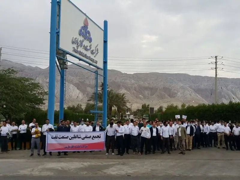ڕۆژی سێشهممه ٣٠ی گهلاوێژ، كرێكارانی ڕهسمی شاغڵ له شیركهتی نهوت و گازی پارس له عهسهلوویه، بۆ چهندهمین ڕۆژی بهردهوام دژ به نهدانی داخوازییهكانیان كۆبوونهوه.