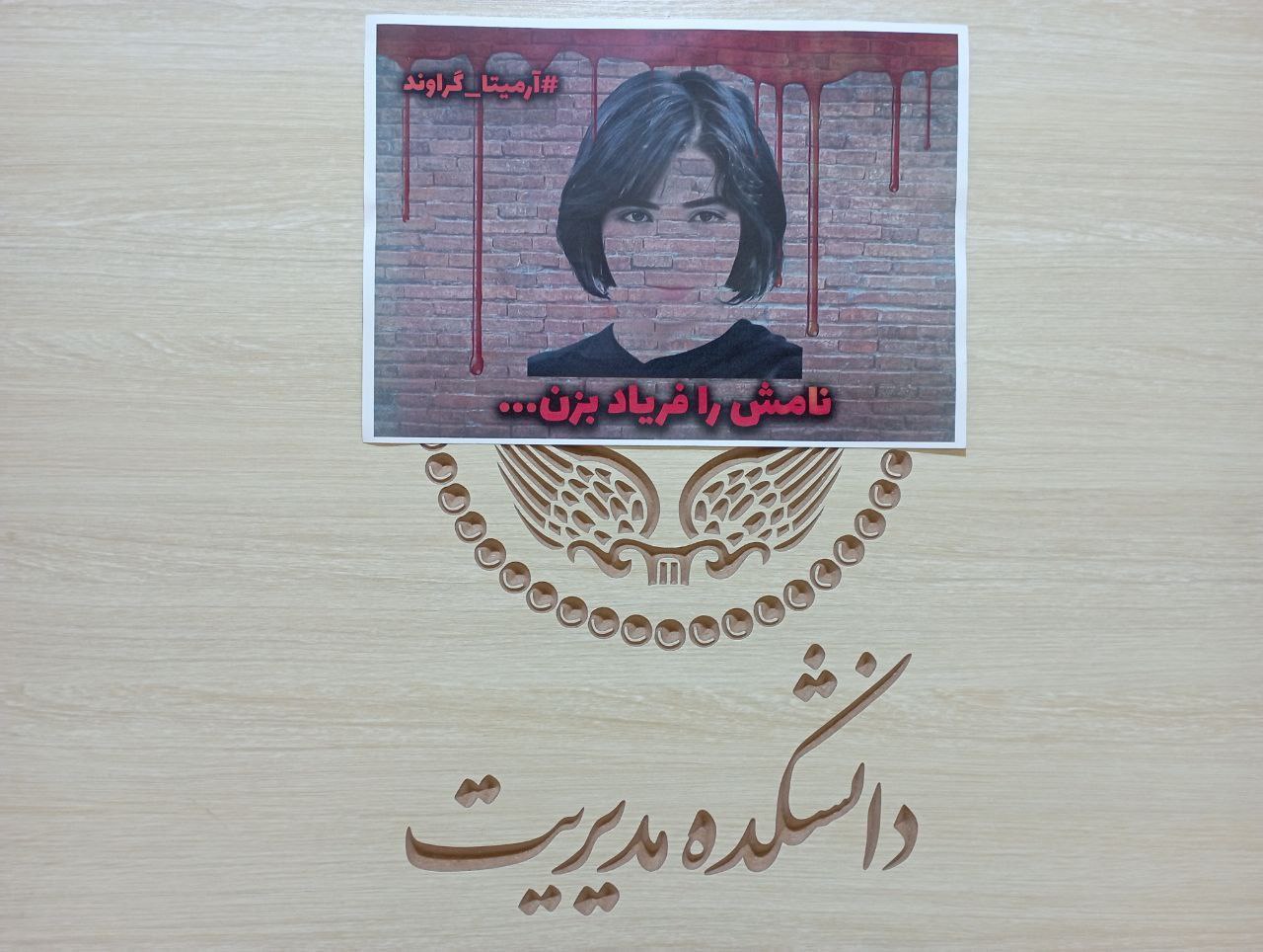 بهپێی ئهو وێنانهی به دهستمان گهیشووه، خوێندكارانی زانكۆی تاران بۆ پشتیوانی له “ئارمیتا گهراوهند” تراكت و وێنهی ئهو قوربانیهی سهركوتی وهحشیانهی كۆماری ئیسلامیان له سهرانسهری زانكۆدا بڵاو كردۆتهوه و له ههندێک شوێنیش دژبه ڕژیم دروشمیان نووسیوه. جێگای ئاماژهیه كه له ڕۆژانی ڕابردوودا بنهماڵهی ئارمیتا به فهرمی مهرگی مهغزی كچهكهیان پشتڕاست كردبوو.