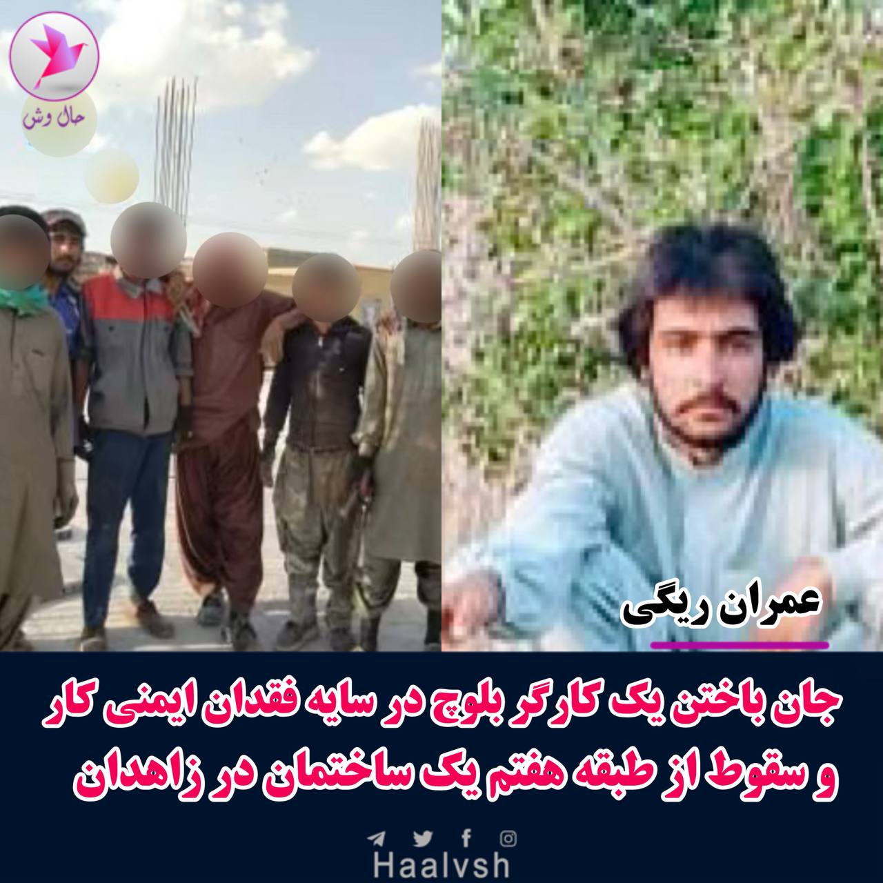 ڕۆژی ڕابردوو، كرێكارێكی ته‌مه‌ن ٣٠ ساڵی خه‌ڵكی دزفوول له‌ كاتی كاركردن دا به‌هۆی گرمابردوویی گیانی له‌ده‌ست داوه‌. هه‌روه‌ها ڕۆژی دووشه‌ممه‌، كرێكارێكی به‌لووچ به‌ ناوی عومران ڕیگی ته‌مه‌ن ٢٠ ساڵ به‌هۆی به‌ربوونه‌وه‌ له‌ نهۆمی حه‌وته‌می ساختمانێك له‌ شاری زاهدان گیانی به‌خت كردووه‌.
