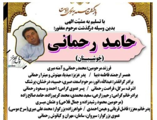 ڕۆژی دووشهممه ٧ی ڕهزبهری ١٤٠٤، هاووڵاتییهك به ناوی “حامد ڕهحمانی” خهڵكی گوندی “خۆشینان”ی سهقز، به تهقهی ڕاستهوخۆی هێزهكانی ڕژیم گیانی له دهستدا.