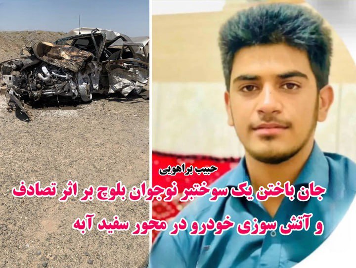 به‌پێی ڕاپۆرته‌كان، “حه‌بیبۆڵڵا به‌راهوویی” خه‌ڵكی ناوچه‌ی “بورجه‌ك”ی سه‌ر به‌ شارستانی نێهبه‌ندانه و ئۆتومبێله‌كه‌ی له‌ ناوچه‌ی “سپی ئاو” تووشی ڕووداوی هاتووچۆ بووه‌. ئۆتومبێلی ناوبراو پاش ئه‌و ڕووداوه‌ ئاگری گرتووه‌ و شۆفێره‌كه‌ی له‌ نێو ئاگردا سووتاوه‌. جێگای ئاماژه‌یه‌ كه‌ له‌ ڕۆژانی ڕابردوو به‌هۆی هاتنی لافاو له‌ پارێزگای سیستان و به‌لووچستان، لانیكه‌م ٢٠ سووختبه‌ر گیانیان له‌ ده‌ست داوه‌.